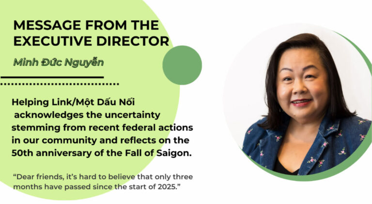 It’s hard to believe that only three months have passed since the start of 2025. Yet, the uncertainty and fear from recent federal actions have already weighed heavily on our community. For an organization like Helping Link/Một Dấu Nối , dedicated to supporting refugees and immigrants, these challenges feel especially personal. Thank you for standing with us, we are stronger together.